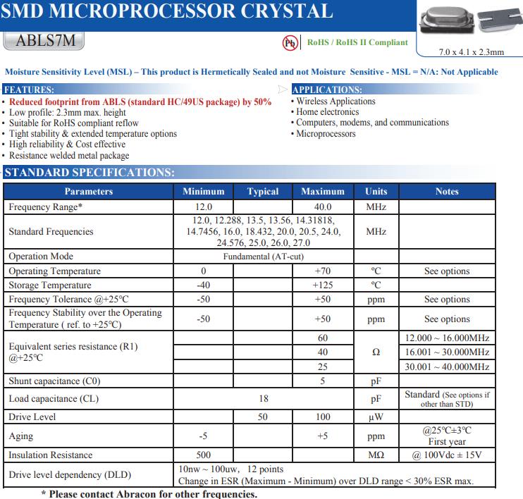 | ABLS7M-18.432MHZ-B-2-T | Abracon晶振 | ABLS7M | MHz Crystal | 18.432MHz |