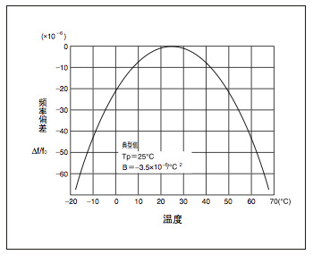 "Q-SC32S03205C5ADE",音叉型石英晶振的頻率溫度特性如左側的曲線圖所示,顯示了以+25°C為頂點的負向2次方程曲線. 溫度范圍越寬,則頻率的變化量也越大,因此,需要 考慮一下所使用環境的溫度范圍和必要的精度.