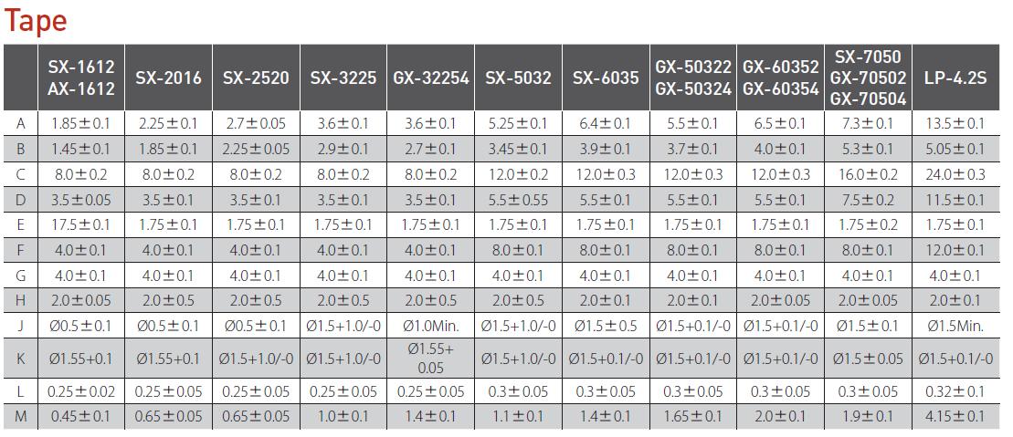 | 晶振目錄 | 希華晶振型號SX-2520mm | |