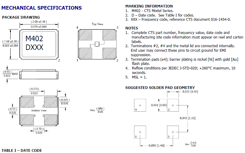 | 402F160XXCJR | CTS晶振 | 402 | MHz Crystal | 16MHz |
