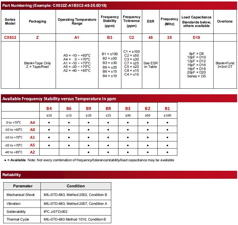 CX532Z-A5B3C5-70-25.0D18,Cardinal輕薄型晶振,5032mm諧振器,物聯(lián)網晶振,參數(shù)表