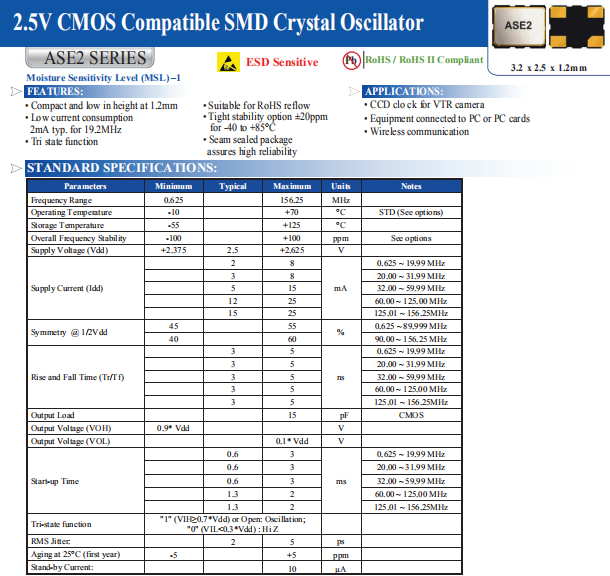 ABRACON晶振,ASE2-22.000MHZ-ET晶振,ASE2晶振,有源晶體振蕩器.3225mm體積非常小的SMDcrystal器件,是民用小型無(wú)線(xiàn)數(shù)碼產(chǎn)品的最佳選擇,小體積的晶振被廣泛應(yīng)用到,手機(jī)藍(lán)牙,GPS定位系統(tǒng),無(wú)線(xiàn)通訊集,高精度和高頻率的穩(wěn)定性能,非常好的減少電磁干擾的影響,是民用無(wú)線(xiàn)數(shù)碼產(chǎn)品最好的選擇,符合RoHS/無(wú)鉛.