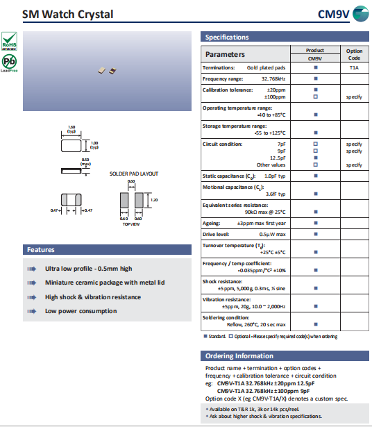 | Golledge晶振 | 單位 | CM9V晶振 | 石英晶振基本條件 |