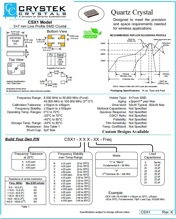| CRYSTEK晶振 | 單位 | CSX1晶振 | 石英晶振基本條件 |