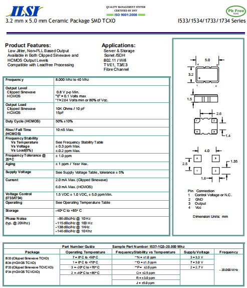 ILSI晶振,I533晶振,溫補(bǔ)晶振.貼片石英晶體,體積小,焊接可采用自動貼片系統(tǒng),產(chǎn)品本身小型,表面貼片晶振,特別適用于有小型化要求的電子數(shù)碼產(chǎn)品市場領(lǐng)域,因產(chǎn)品小型,薄型優(yōu)勢,耐環(huán)境特性,包括耐高溫,耐沖擊性等,在移動通信領(lǐng)域得到了廣泛的應(yīng)用,晶振產(chǎn)品本身可發(fā)揮優(yōu)良的電氣特性,滿足無鉛焊接的高溫回流溫度曲線要求.