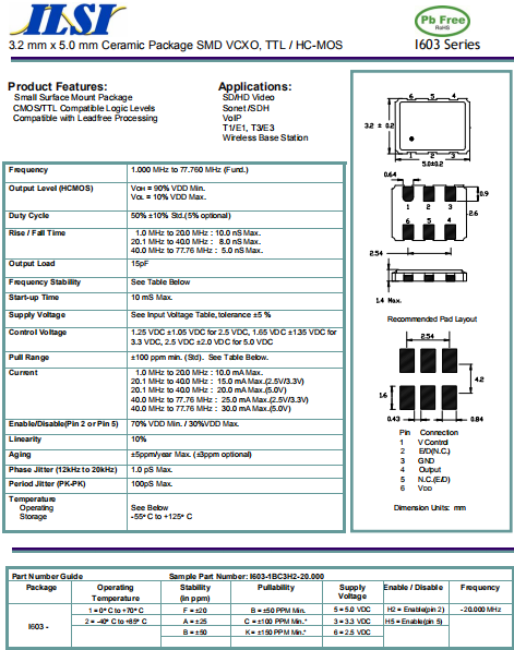 ILSI晶振,I603晶振,VCXO晶振.有源晶振,是只晶體本身起振需要外部電壓供應(yīng),起振后可直接驅(qū)動CMOS 集成電路,產(chǎn)品本身已實現(xiàn)與薄型IC(TSSOP封裝,TVSOP封裝)同樣的1mm厚度,斷開時的消費電流是15 µA以下,編帶包裝方式可對應(yīng)自動搭載及IR回流焊接(無鉛對應(yīng))產(chǎn)品有幾種電壓供選1.8V,2.5V,3V3.3V,5V,以應(yīng)對不同IC產(chǎn)品需要.