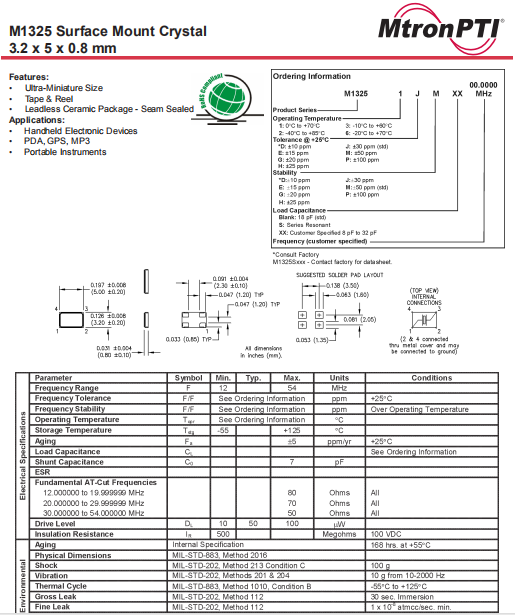 | MTRONPTI晶振 | 單位 | M1325晶振 | 石英晶振基本條件 |