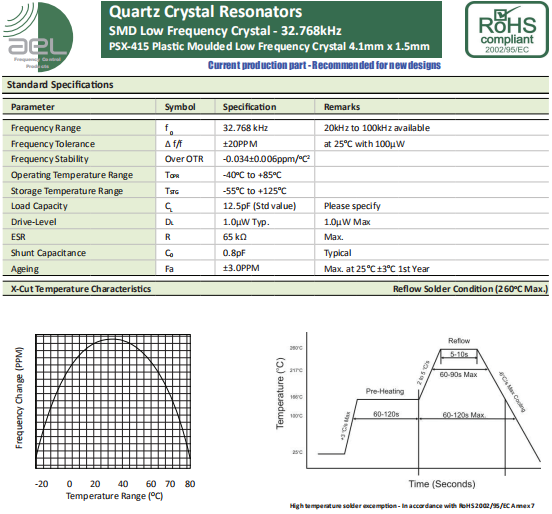| AEL晶振 | 單位 | PSX-415晶振 | 石英晶振基本條件 |
