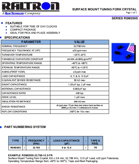 Raltron晶振,RSM200S晶振,進口陶瓷面晶振.貼片表晶32.768K系列具有超小型,薄型,質地輕的表面貼片音叉型石英晶體諧振器,晶振產品本身具備優良的耐熱性,耐環境特性,在辦公自動化,家電領域,移動通信領域可發揮優良的電氣特性,符合無鉛標準,滿足無鉛焊接的回流溫度曲線要求,金屬外殼的石英晶振使得產品在封裝時能發揮比陶瓷晶振外殼更好的耐沖擊性能.