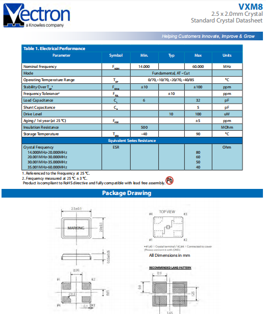 | VECTRON晶振 | 單位 | VXM8晶振 | 石英晶振基本條件 |