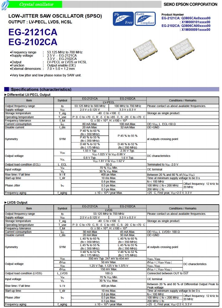 | X1M0002010005 | EG-2102CB | 212.500000 MHz | 5.00 x 3.20 x 1.40 mm | LV-PECL | 2.970 to 3.630 V |