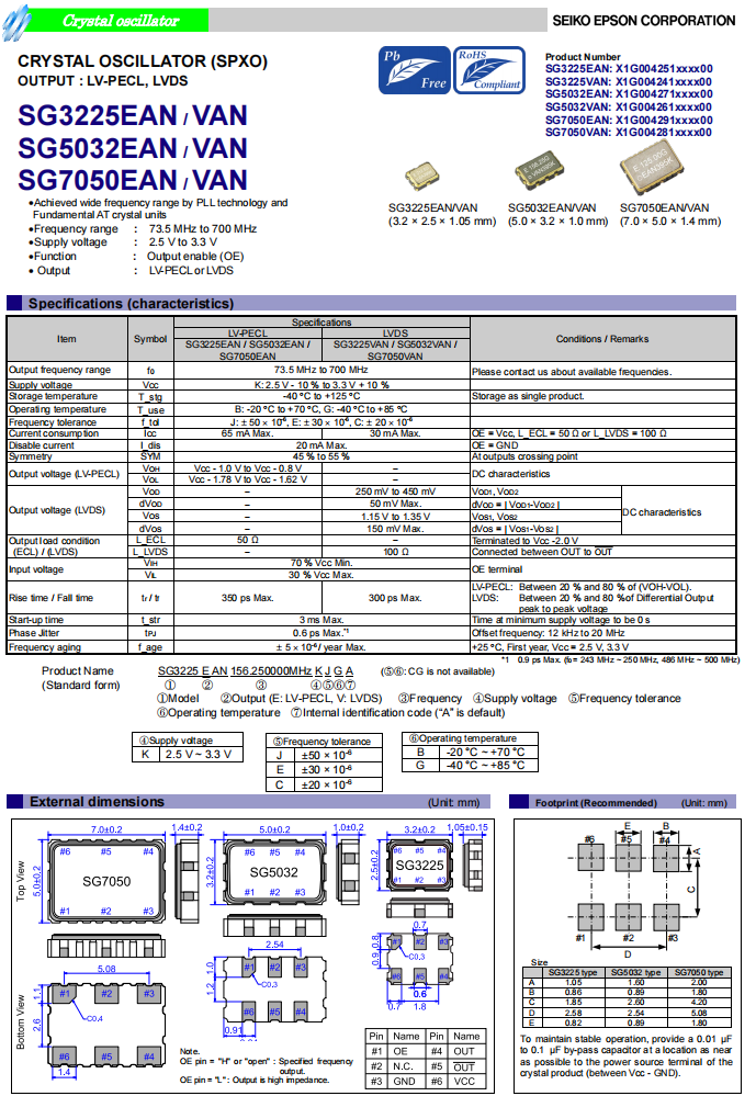 | X1G0042510039 | SG3225EAN | 700.000000 MHz | 3.20 x 2.50 x 1.20 mm | LV-PECL | 2.250 to 3.630 V | -40 to 85 °C |