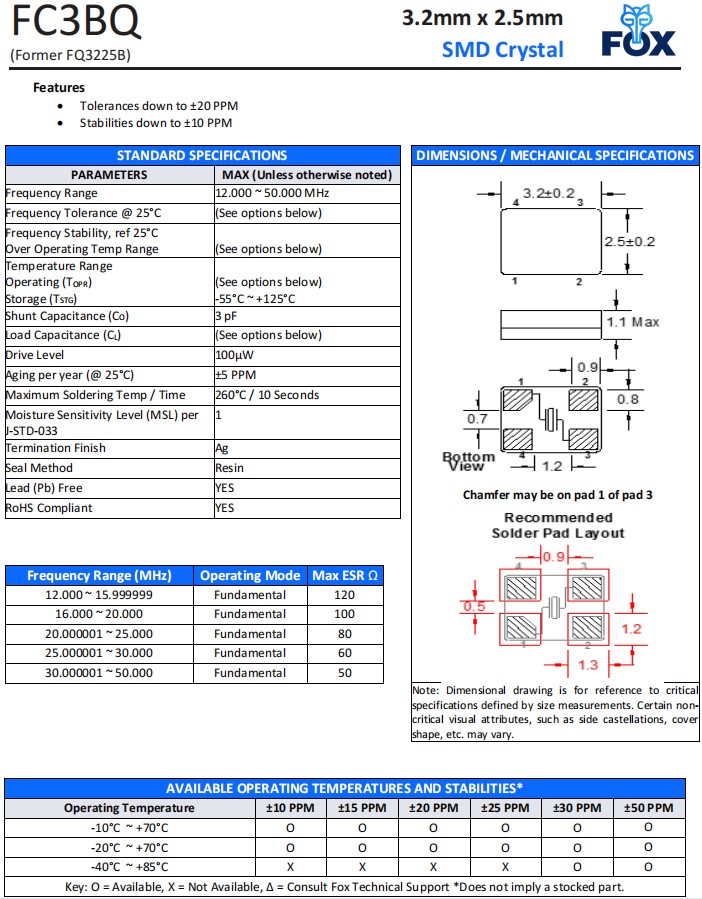 | FC3BQBBME12.0-T3 | Fox晶振 | FC3BQ | 12 MHz | ±50ppm |