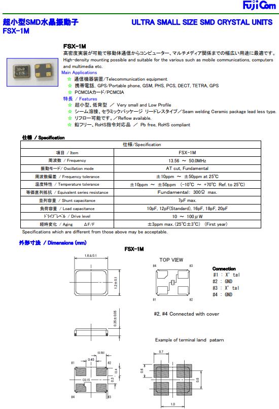 日本富士晶振,FSX-1M水晶振動子,GPS專用晶振,貼片晶振本身體積小,超薄型石英晶體振蕩器,特別適用于有目前高速發展的高端電子數碼產品,因為晶振本身小型化需求的市場領域,小型,薄型是對應陶瓷振蕩器(偏差大)和普通的石英晶體振蕩器(偏差小)的中間領域的一種性價比較出色的產品.產品廣泛用于筆記本電腦,無線電話,衛星導航SSD,USB,Blu-ray等用途,符合無鉛焊接的高溫回流焊曲線特性.