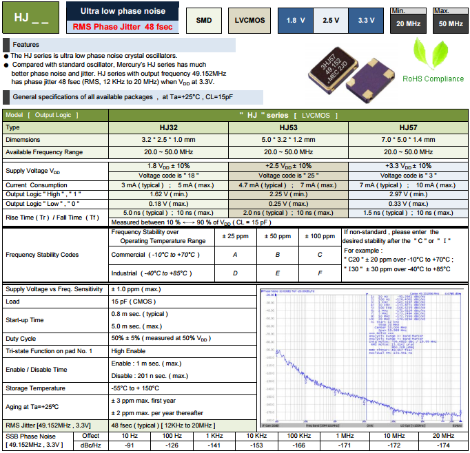 MERCURY晶振,貼片石英晶振,HJ53有源晶體.無論是溫補(bǔ)晶體也好,壓控晶振也罷,產(chǎn)品均采用了,離子刻蝕調(diào)頻技術(shù),比目前一般使用的真空蒸鍍方式調(diào)頻,主要在產(chǎn)品參數(shù)有以下提升:1.微調(diào)后調(diào)整頻率能控制在±2ppm,一般只能保持在±5ppm;2.產(chǎn)品的激勵(lì)功率相關(guān)性參數(shù)有大幅提升;3.產(chǎn)品的長(zhǎng)期老化率可保證在±2ppm之內(nèi).