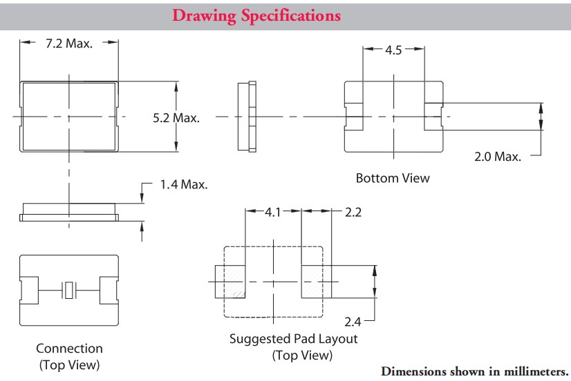 | 尺寸 | 7.2x5.2x1.4mm |