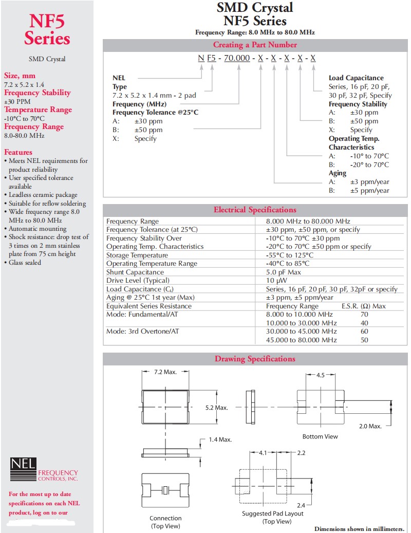 NF5-48.000-A-B-B-B-20pF,7050mm,美國NEL耐爾晶振,高可靠性晶振,參數(shù)表