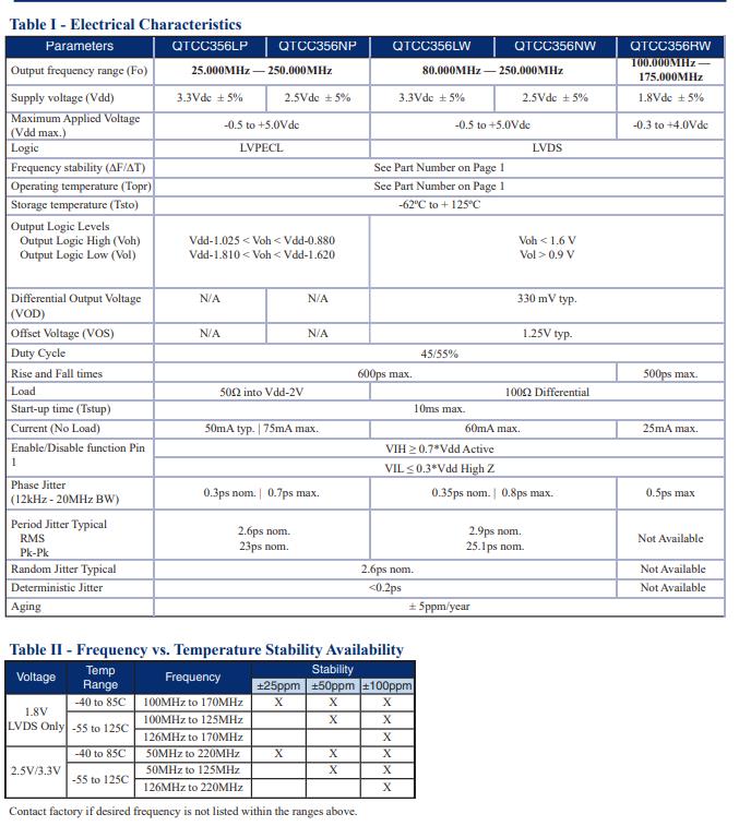 QTCC356LWD12-125.000MHz,LVDS差分晶振,6G以太網晶振參數表