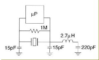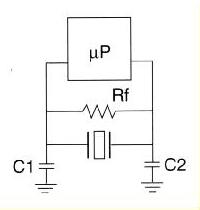 在晶體電抗為感性的并聯模式下,需要兩個外部電容器(C1)和(C2),以實現振蕩中必要的相移.無論晶體處于基本模式還是泛音模式,都需要C1和C2.C1和C2的值由芯片制造商指定,從6pF到47pF不等.