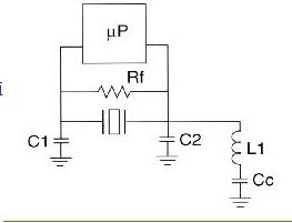 在標準泛音模式下,C2值從10pF到30pF不等.Cc值應至少選擇C2值的10倍,因此等效C-equiv.將近似值.