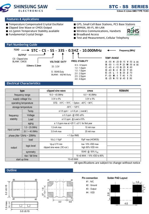 SHINSUNG晶振,STC-SS貼片晶體,STC-CS-SS-33S-0.5HZ-20.000MHz溫補(bǔ)振蕩器,5032mm體積的石英晶體振蕩器,有源晶振,該產(chǎn)品可驅(qū)動(dòng)2.5V的溫補(bǔ)晶振,壓控晶振,VC-TCXO晶體振蕩器產(chǎn)品,電源電壓的低電耗型,編帶包裝方式,可對(duì)應(yīng)自動(dòng)高速貼片機(jī)自動(dòng)焊接,及IR回流焊接(無鉛對(duì)應(yīng)),為無鉛產(chǎn)品,超小型,質(zhì)地輕.產(chǎn)品被廣泛應(yīng)用到集成電路,程控交換系統(tǒng),無線發(fā)射基站.