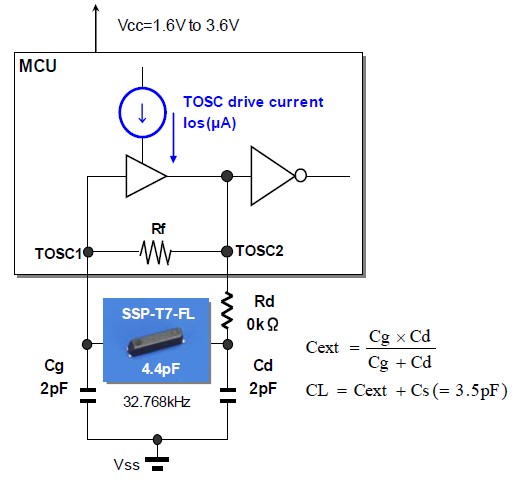 問:晶振的參數里有配用的諧振電容值。比如說32.768K的是12.5pF;4.096M的是20pF. 這個值和實際電路中晶振上接的兩個電容值是什么關系?像DS1302用的就是32.768K的晶振,它內部的電容是6pF的