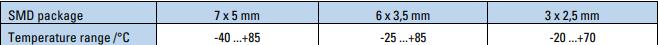 對(duì)于通常的時(shí)鐘應(yīng)用,對(duì)石英晶體振蕩器沒(méi)有特殊要求。情況不同了,然而,當(dāng)發(fā)射器和接收器必須相互調(diào)諧時(shí),例如藍(lán)牙的情況。對(duì)于使用晶體的電路,藍(lán)牙需要特別窄的公差(+/- 20ppm)的技術(shù)限制,振蕩晶體正好是這個(gè)規(guī)格(即+/- 10ppm在25°C加上+/- 10ppm在溫度范圍內(nèi))。甚至雖然該技術(shù)在不斷發(fā)展,但仍能在有限程度上達(dá)到所要求的公差小尺寸,如表1所示。