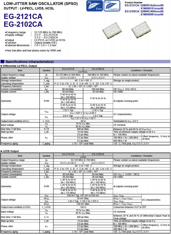 | Q3805CA00019400 | EG-2121CA | 98.304000 MHz | 7.00 x 5.00 x 1.20 mm | LV-PECL | 2.375 to 2.625 V | 0 to 70 °C |