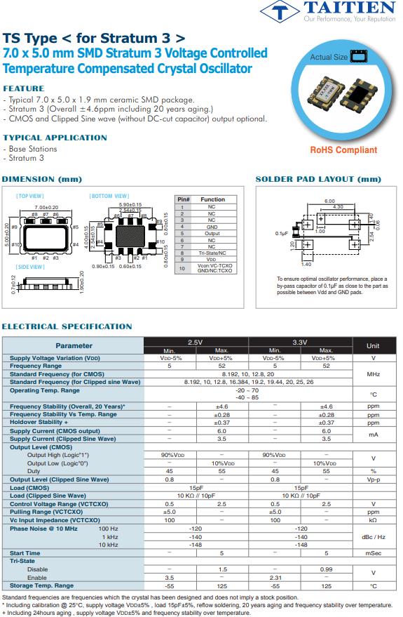 | TSEAMCSANF-20.000000 | Taitien | TS | VCTCXO | 20MHz | 2.8 V ~ 3.3 V |