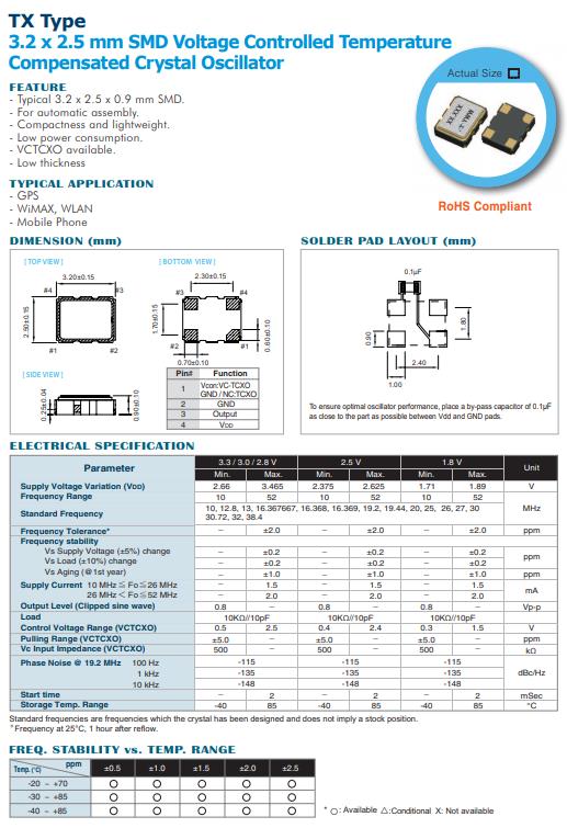 TXEACLSANF-38.400000 Taitien TX VCTCXO 38.4MHz 2.8 V ~ 3.3 V