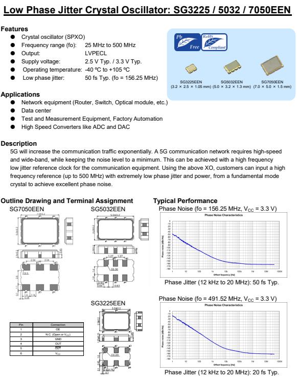 愛普生發(fā)布首款優(yōu)質(zhì)的LVPECL差分晶振X1G005221000200,5G將成倍增加通信流量。5G通信網(wǎng)絡(luò)要求高速還有寬頻帶,同時把噪音降到最低。這可以通過高頻率來實現(xiàn)用于通信設(shè)備的低抖動基準時鐘。使用上述XO,客戶可以輸入一個高頻率參考(高達500 MHz),具有極低的相位抖動和功率,從基本模式晶體實現(xiàn)優(yōu)良的相位噪聲。
