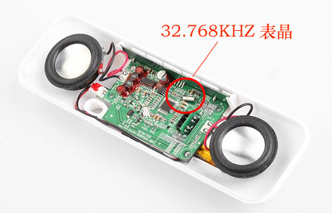 接下要來給大家看一幅圖片,這是一幅便捷音響的圖片,從圖片中可以看出這個音響特簡單,兩個小喇叭一塊主板,主板上面有很多小元件,有電容,有IC,還有什么,沒錯,還有一顆圓柱型的晶振,這是一顆32.768KHZ表晶,也可以稱之為石英晶振,圓柱晶振都可能,它在音響里面是起到頻率顯示的,像這種便捷音響相信很多人都有,用起來也很方便,如果你感興趣的話可以拆開來看看,里面有沒有我說的這顆晶振,像藍牙音響用一般用的是貼片晶振和石英晶體諧振器。其實在生活中晶振的身影無處不在。
