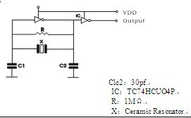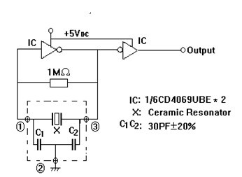 根據(jù)引出腳方式可分為SMD諧振器與直DIP諧振器,應(yīng)用頻率可以分為低頻千赫系列,中頻和高頻諧振器兆赫系列。陶瓷諧振器需要與各種IC相配應(yīng)用,常用IC有:4069UBE,TC74HCUO4P