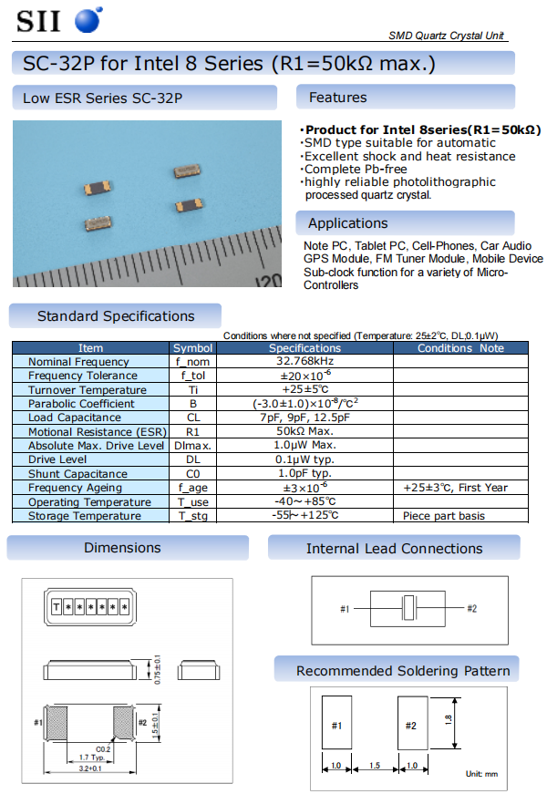 隨著SC-32P系列的出現,日本SEIKO晶振提供的32.768KHz石英晶體的最大電阻降低,3.2×1.5mm外殼的電阻為50k?,標準情況下,常用的3.2×1.5毫米32.768KHz石英晶體的最大電阻為70k?,SC-32P系列可以提供7pf,9pf,12.5pf的負載電容。開發者可以在25°C時在10ppm(可選)和20ppm(標準)的頻率容差之間進行選擇。通常,石英晶體可以在所有版本的現貨中獲得(以先前銷售為準)。4到6周的更換時間非常短。