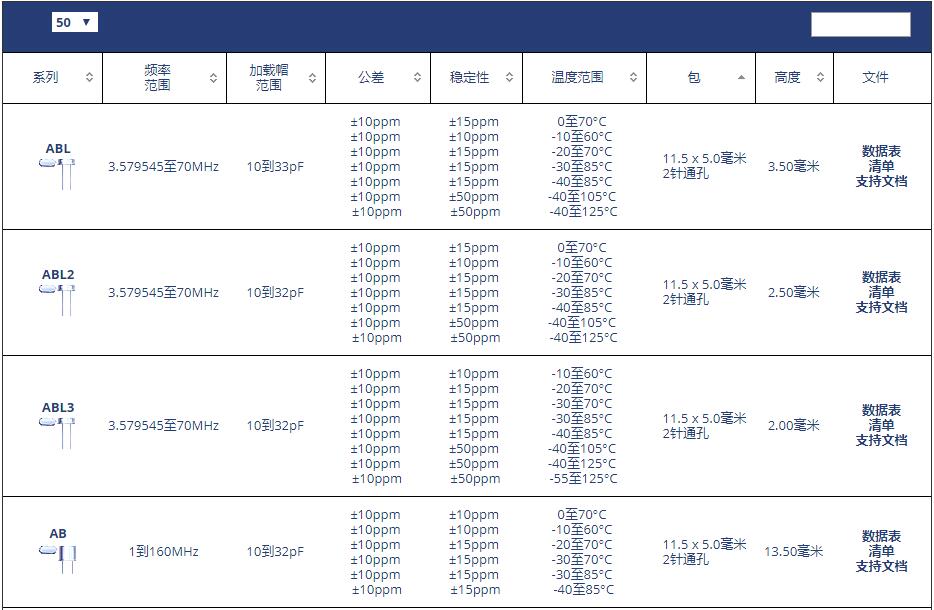 ABRACON晶振插件型號代碼表: