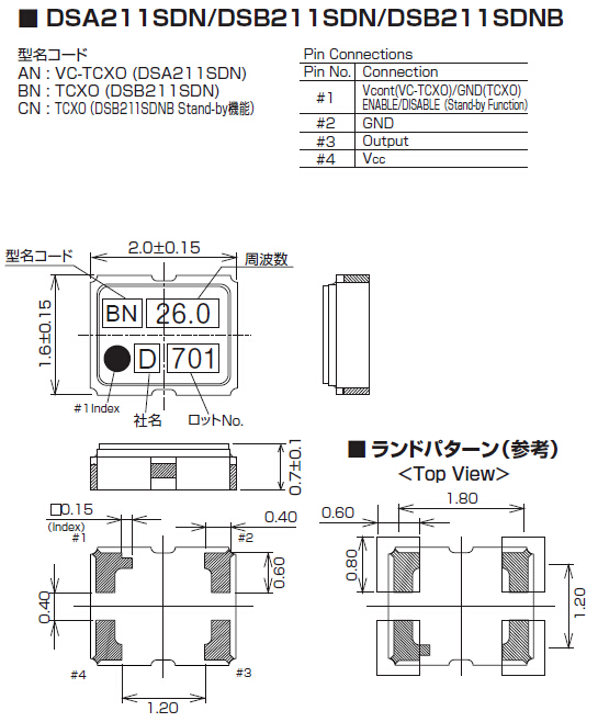 DSA211SDN振蕩器,大真空有源晶振,VC-TCXO晶振,溫補晶振(TCXO)產品本身具有溫度補償作用,高低溫度穩定性:頻率精度高0.5 PPM~2.0 PPM,工作溫度范圍: - 30度~85度,電源電壓:1.8V~3.3V之間可供選擇,產品本身具有溫度電壓控制功能,世界上最薄的晶振封裝,頻率:26兆赫,33.6兆赫,38.4兆赫,40兆赫,因產品性能穩定,精度高等優勢,被廣泛應用到一些比較高端的數碼通訊產品領域,GPS全球定位系統,智能手機,WiMAX和蜂窩和無線通信等產品,符合RoHS/無鉛.