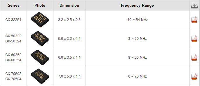 | 晶振目錄 | 希華晶振型號GX-60352 GX-60354 | |
