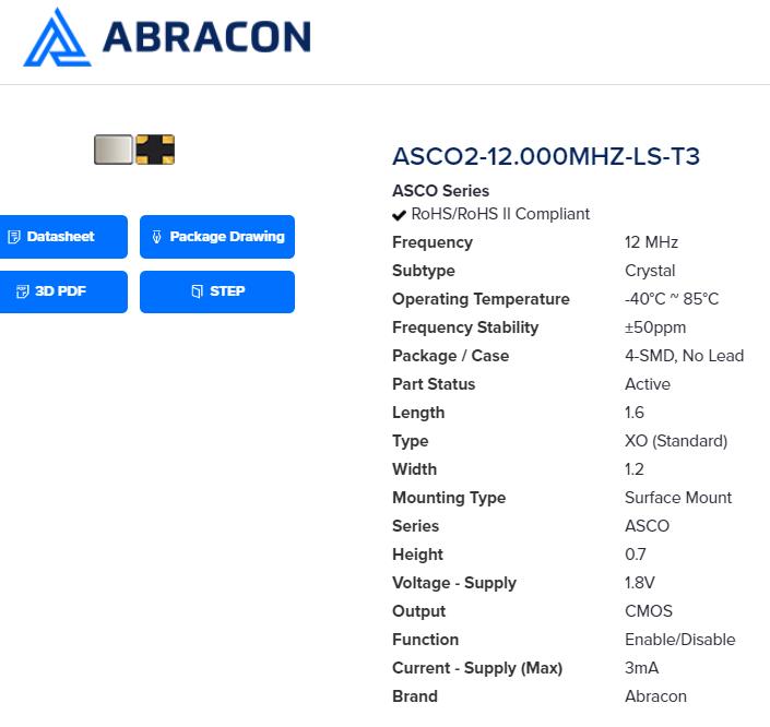 | ASEMPC-12.000MHZ-LR-T | Abracon晶振 | Pure Silicon™ ASEMP | MEMS (Silicon) | 12MHz | 2.25 V ~ 3.6 V | -40°C ~ 85°C |