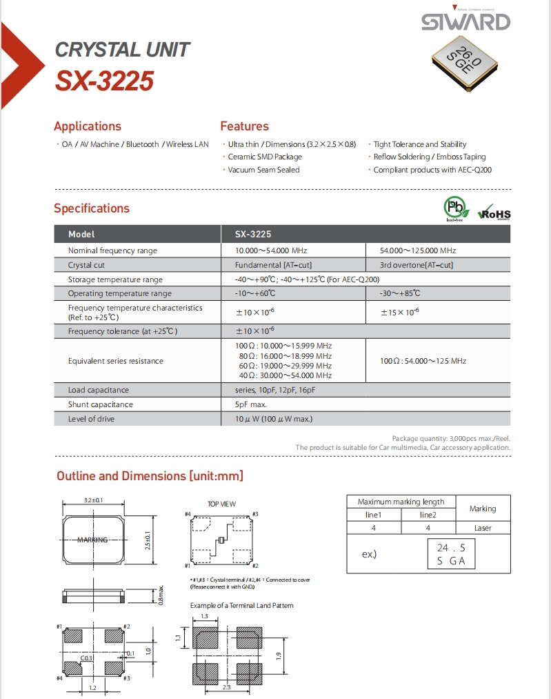 | XTL571100-H201-493 | Siward晶振 | SX-3225 | 25 MHz | ±10ppm | 12pF | -20 ℃~70 ℃ |