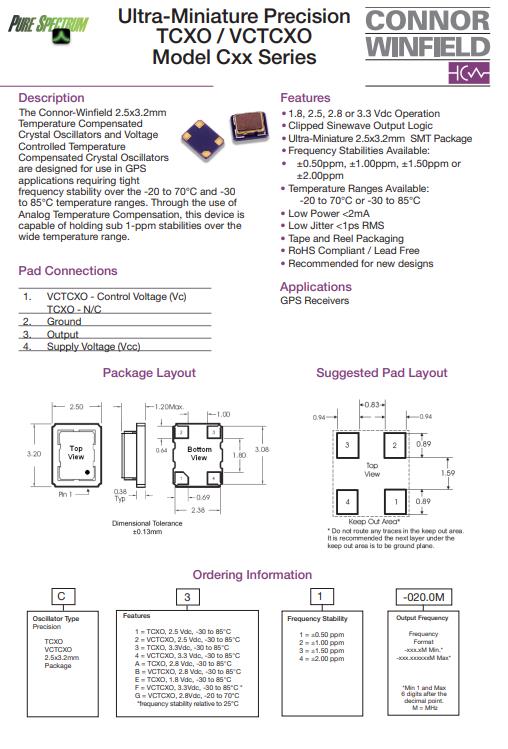 更多>>GPS接收器專用溫補晶體振蕩器C34-040.0M